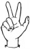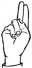 На ћирилици написано ЛУКА ПОПЕВИЋ састоји се из 11 слова [?]. Исписано ћириличном једноручном азбуком за глувонеме: